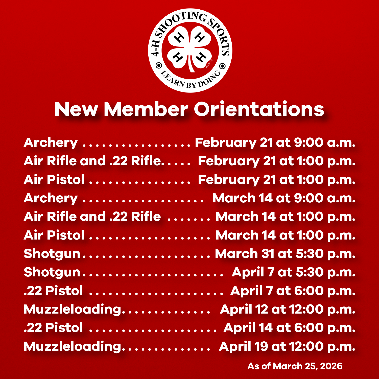 Each Shooting Sports discipline will host its own orientations for new members. Go to each discipline’s page on LC4HSS.org for dates, times, and locations.